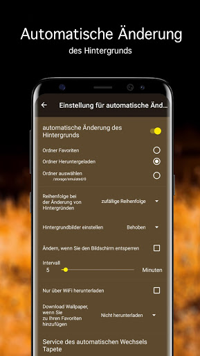 • Automatische Hintergrundänderung mit dem angegebenen Intervall (Live-Wallpaper)
