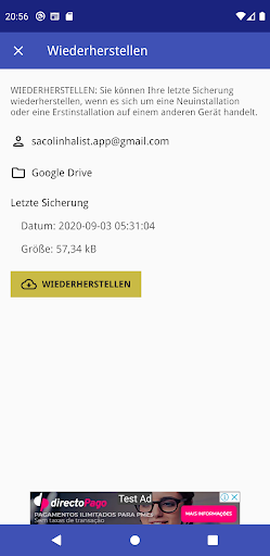 Stellen Sie Ihre Sicherung wieder her, indem Sie die Anwendung neu installieren oder auf einem neuen Gerät installieren.