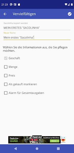 Dupliziere eine Einkaufsliste - "Sacolinha".