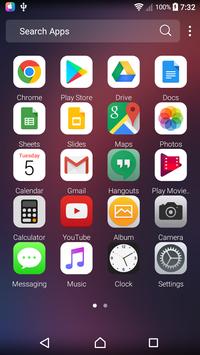 Swipe up home screen to access the setting shortcuts to key features such as apps, widgets, wallpapers, icons, and system themes to customize your launcher easily