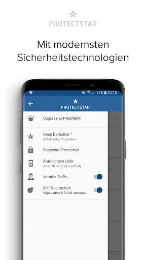 In besonderen Notfällen sind die privaten Notizen und Sprachaufzeichnungen sicher. Sollte das Android Smartphone verloren oder gestohlen werden, werden bei aktivierter Selbstzerstörung nach fünf ungültigen Passworteingaben alle Daten automatisch zerstört.