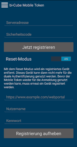 bi-Cube Mobile Token ermöglicht eine starke Authentifizierung für Benutzer, die sich am bi-Cube Web Portal ihres Unternehmens anmelden und somit auf entsprechende Services zugreifen wollen, ohne ein Hardware-Token mit sich zu führen. Der zur Anmeldung verwendete Token kann über diese App erzeugt werden. Bei Aufruf des bi-Cube Web Portal über die App erfolgt die duale Authentifizierung sogar automatisch. Zur Nutzung ist eine Registrierung des verwendeten Geräts im bi-Cube Web Portal erforderlich. Diese kann eigenständig oder über entsprechend berechtigte Personen vorgenommen werden.