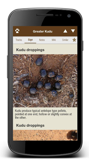 • Spuren und Anzeichen von Informationen für 57 südliche afrikanische Säugetierarten (diese Zahl wird in zukünftigen Updates weiterhin hinzugefügt).