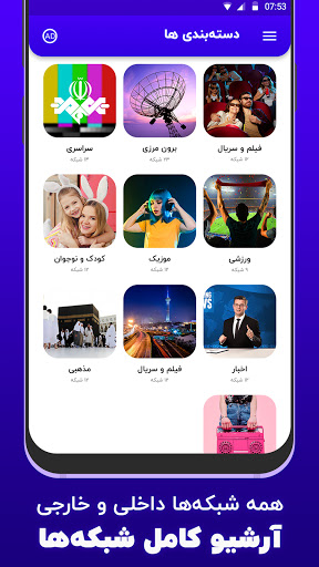 TV und Satellit mit proprietären Programmen. Iranische Netzwerke und ausländische Netzwerke sind verfügbar, wohin Sie mit dem Internet verbunden sind. Live-Broadcast-Sportarten, Fußball und Video und Serie.