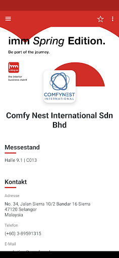 Wir schätzen Ihre Anregungen und versuchen diese bei der weiteren Entwicklung einzubeziehen. Nutzen Sie imm@visitor.koelnmesse.de für Ihre Anfragen.