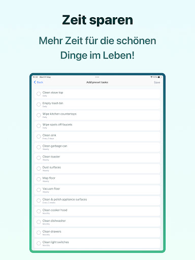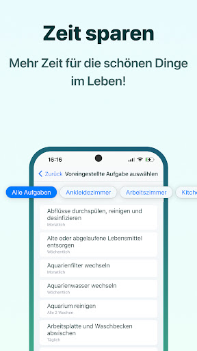 - Füge Reinigungsaufgaben hinzu und lass dir einen individuellen Reinigungsplan erstellen.