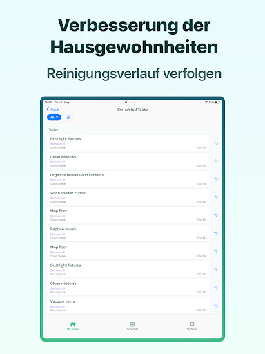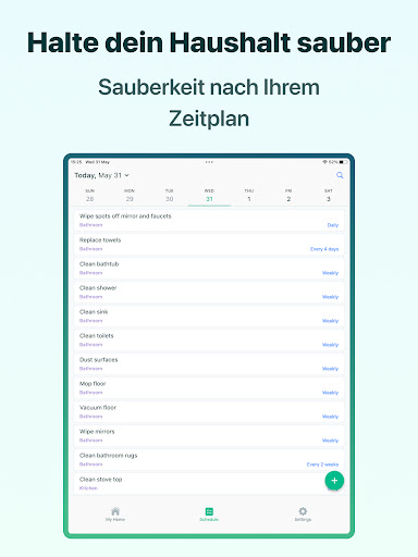 Home Tasker ist eine kostenlose App, mit der sich Hausarbeiten in Echtzeit planen und organisieren lassen. Verwende einfache, anpassbare Vorlagen, um deine Hausputz-Routine einfacher und unterhaltsamer zu gestalten.