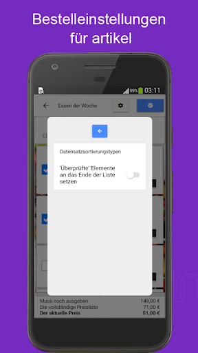 * Klicken Sie auf die drei Punkte oben und wählen Sie "Liste bereinigen", um durchgestrichene Gegenstände zu entfernen.