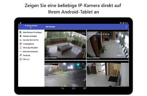 • Anzeigen von IP-Kameras von überall: Fügen Sie IP-Kameras hinzu, die außerhalb des lokalen Netzwerks vorhanden sind, und sehen Sie, was bei Ihnen zu Hause, im Büro oder auf dem Parkplatz passiert.