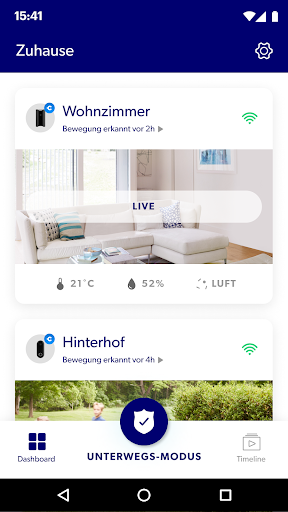Überwache dein Zuhause: Sieh dir tagsüber oder nachts aufgezeichnete oder Live-HD-Videos an. Mit Canarys Timeline siehst du was zu Hause alles passiert ist. Deine Lieblingsclips kannst du speichern und herunterladen.