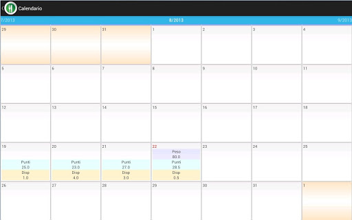 Sie haben einen täglichen Blick darauf, wie viele Punkte Sie realisiert haben und wie viele Punkte Sie noch verfügbar sind und Ihr Gewicht überwachen.