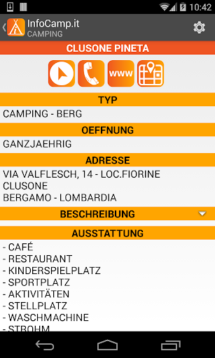 Info Camp APP wurde von einem erfahrenen Camper überlegt und etwickelt, mit Berücksichtung auf einer schnellen Benutzung, sodaß eine einfachere Suche der Unterkunft, wo Sie aufenthalten werden, zugesichert wird.