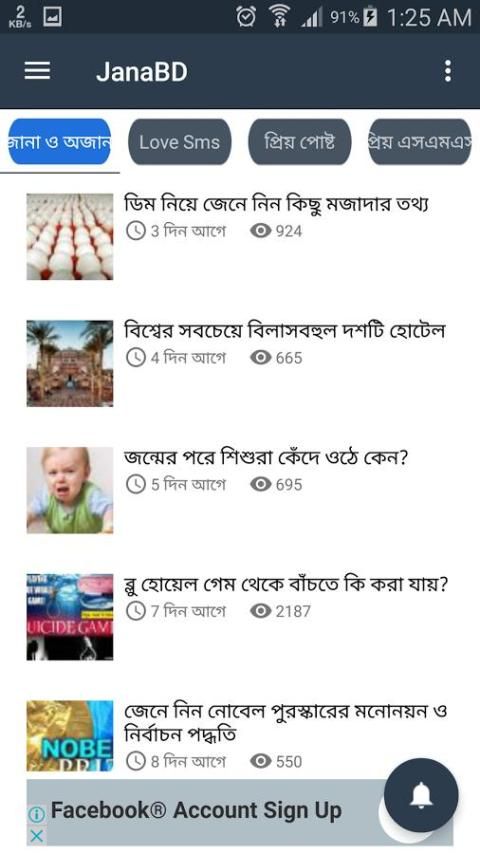 জানা অজানা (Jana Ojana): যেহেতু এপের নাম জানাবিডি তো বুঝতেই পারছেন জানাবিডি এপের মধ্যে নিয়মিত পোস্ট হয় জানা অজানা সব তথ্য ও সাধারণ জ্ঞান ।