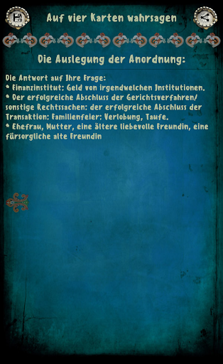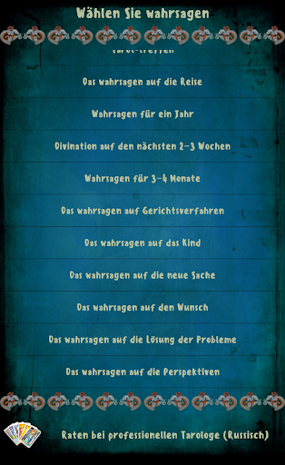 Antworten auf alle wichtigen Fragen sind in der kostenlosen wahrsagen, und diejenigen, die mehr wissen wollen - einfach kaufen können eine kostenpflichtige Version mit vielen Möglichkeiten etwas.