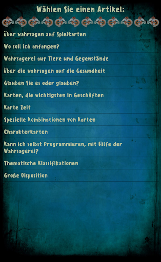 Die App ergänzt 13 Urheberrechte Artikeln, die Ihnen helfen, entdecken Sie die Essenz des wahrsagen Spielkarten und wirkungsvoll auf Ihr Leben zu beziehen.