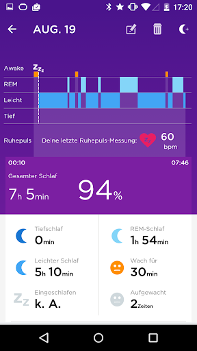 • UP3™ verwendet fortschrittlichste Sensoren, um deine Schlafphasen – REM-, Leicht- und Tiefschlaf – und das Aufwachen zu erfassen. Der Smart Coach kann daraufhin Tipps für mehr Schlaf geben und so die Qualität deines Tages verbessern.