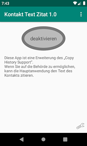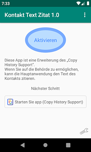 Diese App ist eine Erweiterung des „Copy History Support“. Wenn Sie Zugriff auf Kontakte ermöglichen, kann die Hauptanwendung den Text des Kontakts zitieren. Hauptanwendung https://play.google.com/store/apps/details?id=jettoast.copyhistory