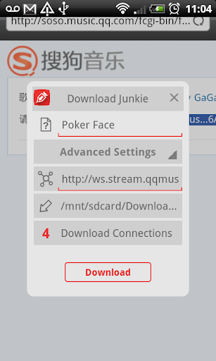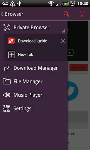 With Download Junkie you can manage the download process of any file from the internet. Just click on the link and choose Download Junkie from the list of apps that appear. You can use any standard browser like Dolphin or Chrome or just use the in-app browser.