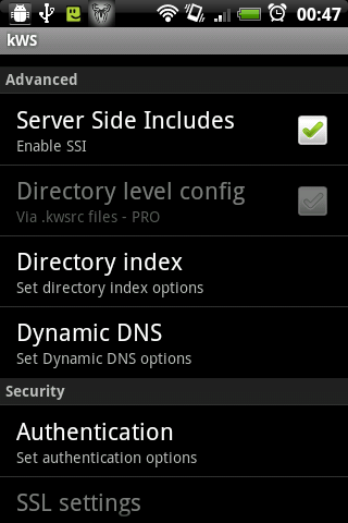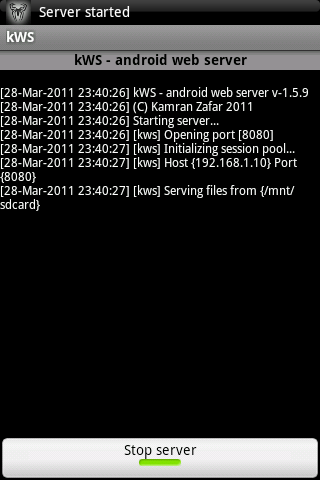 kWS is a lightweight and fast Web Server especially designed for android mobile devices. It can be used to host websites and to serve files over HTTP. kWS implements HTTP-1.0.