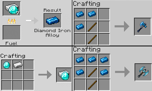 ⛏ Um diese Waffen herzustellen, benötigen wir einen neuen Gegenstand. Zuerst setzt ihr den Diamanten und das Eisen zusammen ⚔️