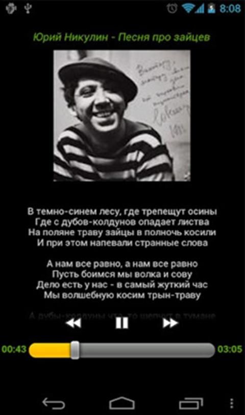 Player Zaitsev there will be indispensable if once again you do not want to be online in social networks. The best opportunity to download a completely any musical composition. In this app you will find everything you need.