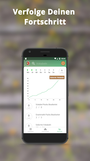 • Deinen aktuellen Wortschatz, dein Sprachrichtigkeit und dein geschätztes Vokabular kannst du jederzeit in deinen Statistiken verfolgen.