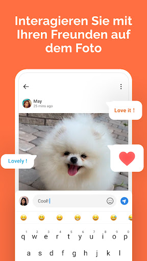 Die Fotos, die Sie und Ihre Freunde übertragen, werden in Echtzeit im Verlauf aktualisiert, sodass Sie sehen können, was Ihre Freunde geteilt haben, und sie jederzeit im lokalen Album speichern können.