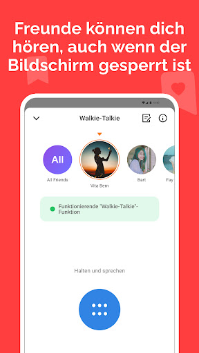 Die "Walkie-Talkie"-Funktion ist jetzt verfügbar. Nutzen Sie Walkie-Talkie, um mit einem Freund zu sprechen. Sie können Sie hören, selbst wenn ihr Telefon gesperrt ist. Kommen Sie und probieren Sie es aus~