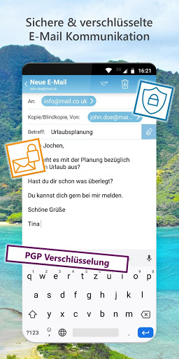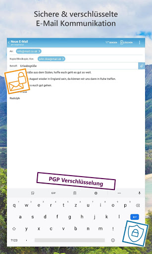 Die mail.co.uk Mail-App unterstützt die PGP-Verschlüsselung von E-Mails und Anhängen, um Ausspähversuche durch zum Beispiel Behörden zu unterbinden.