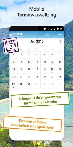 - Übersicht Ihrer gesamten Termine im Kalender. Neue Termine anlegen, bearbeiten und speichern. Automatische Synchronisation mit dem Webmail-Kalender