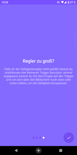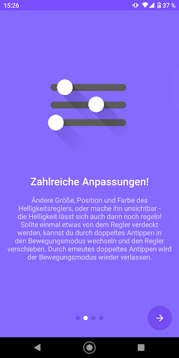 Floating Brightness Control fügt dem Bildschirm einen Helligkeitsregler hinzu, der immer im Vordergrund erreichbar ist. So kannst du die Bildschirmhelligkeit jederzeit anpassen, ohne unterbrechen zu müssen, was du gerade tust - auch aus Apps im Vollbildmodus. Den Regler gibt es auch in kleinerer Ausführung, dann kann der Bildschirm außerhalb des Reglers als Reglerfläche benutzt werden!