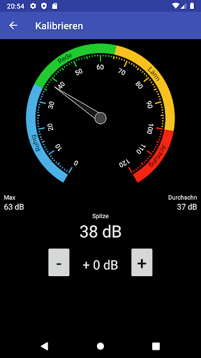 Diese Anwendung verfügt über einen Einstellungsbildschirm, auf dem Dezibel gemäß den Besonderheiten des Gerätemikrofons kalibriert werden können.