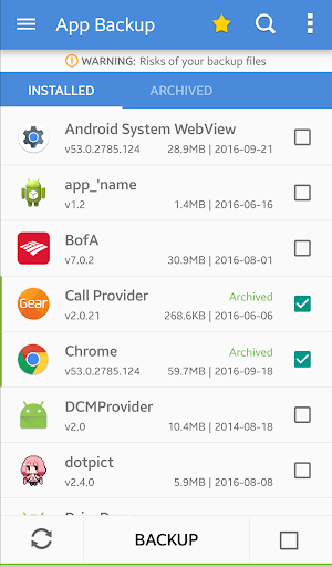 1- App Backup & Restore kann nicht sichern Wiederherstellen von Daten oder Einstellungen von Apps, es nur Sicherung / Wiederherstellen von APK-Dateien.