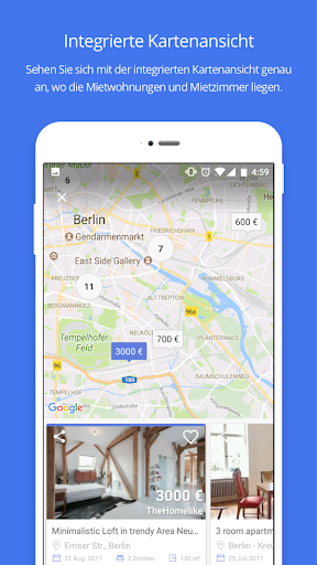 Mithilfe der Kartenansicht können Sie sehen, wo die Wohnungen und Zimmer liegen.