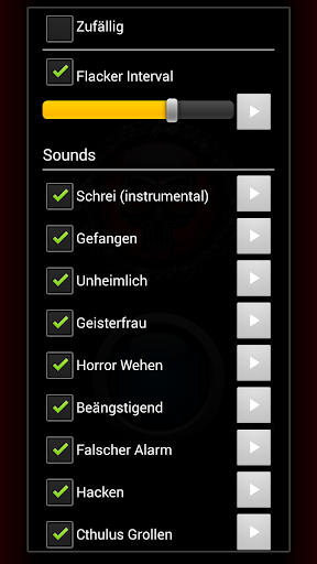 -Regle die Flacker-Rate und wähle die Sounds