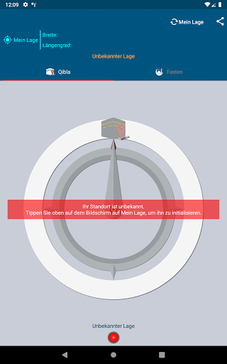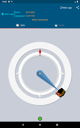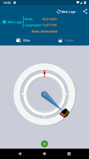 Berechnet die Richtung von Qibla basierend auf Ihrem geografischen Standort. Dafür verwendet die App die Nordrichtung als Referenz und benötigt daher den Magnetfeldsensor des Geräts. Zwei Fälle: