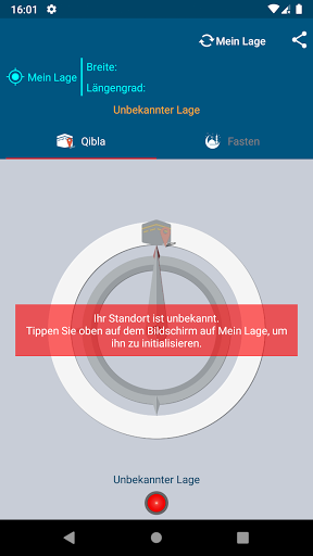 Die Berechnung der Richtung der Qibla sowie der Start- und Endzeiten des Fastens erfolgt nach Ihrem geografischen Standort.