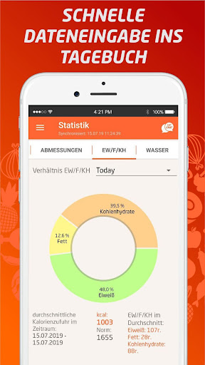 Größte Lebensmittel-Datenbank, eine praktische ergonomische Benutzeroberfläche, schnelle Dateneingabe und Personalisierungsmöglichkeit - etwas, was Sie dabei unterstützt, sowohl den Gewichtsverlust als auch die Gewichtszunahme zu steuern.