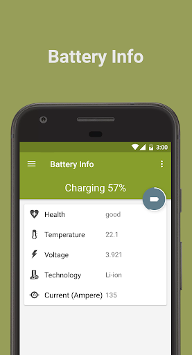 "Batterie-Info" zeigt den Batterieaufladungs- / Entladungsstrom an und gibt auch Informationen zur Gesundheit, Spannung und Temperatur von Batterie.