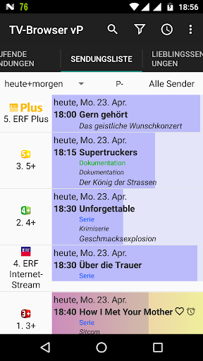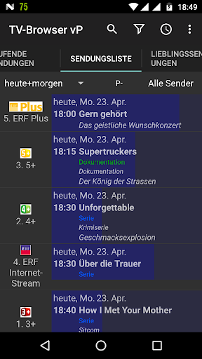 TV-Browser ist eine werbefreie, OpenSource, offline TV- und Radio-Zeitschrift für mehr als 400 hauptsächlich deutsche, schweizer, österreichische, dänische und polnische Sender.