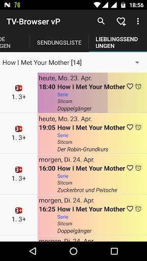 TV-Browser sucht automatisch nach Lieblingssendungen, die Sie zuvor angelegt haben um Ihnen das Finden von Sendungen, die Sie interessieren könnten, zu erleichtern. An gefundene Sendungen kann dann automatisch erinnert werden.