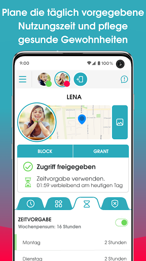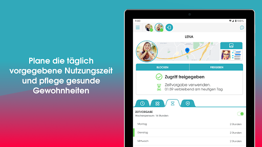 • Du kannst einmalige oder regelmäßige Zeitpläne für deine Kinder festlegen und die Nutzungszeit unterwegs verwalten.