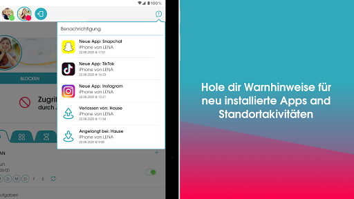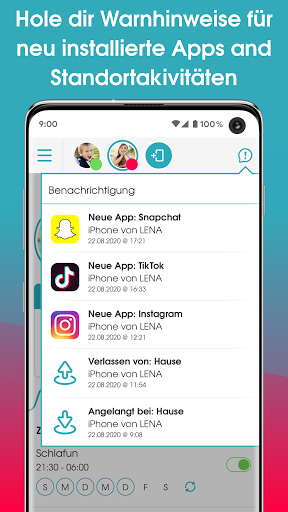 • Neue App-Benachrichtigungen – Erhalt von Benachrichtigungen, wenn neue Apps auf dem Gerät deines Kindes installiert werden