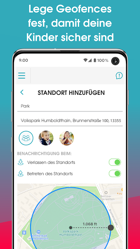• Geofencing mit Standorten – Erstellen von GPS-Geozäunen an spezifischen Standorten mit Warnungen in Echtzeit, wenn dein Kind das Haus, die Schule oder ein beliebig festgelegtes Gebiet betritt oder verlässt