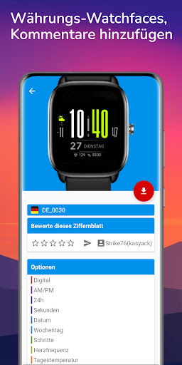 Amazfit GTS 4 Mini Watchfaces ist die ultimative App, um Ihre Smartwatch in ein stilvolles Accessoire zu verwandeln, das perfekt zu Ihrer einzigartigen Persönlichkeit passt. Entdecken Sie eine Welt voller Anpassungsoptionen und entdecken Sie eine große Sammlung atemberaubender Zifferblätter, die speziell für Ihre Xiaomi Amazfit GTS 4 Mini entwickelt wurden. Mit einer intuitiven Benutzeroberfläche und nahtloser Integration ist Amazfit GTS 4 Mini Watchfaces Ihr zuverlässiger Begleiter für personalisierte Erlebnisse mit Ihrer Xiaomi Amazfit GTS 4 Mini.