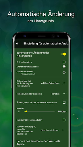 • Automatische Hintergrundänderung mit dem angegebenen Intervall (Live-Wallpaper)