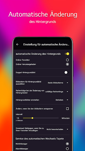 • Automatische Hintergrundänderung mit dem angegebenen Intervall (Live-Wallpaper)