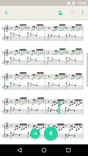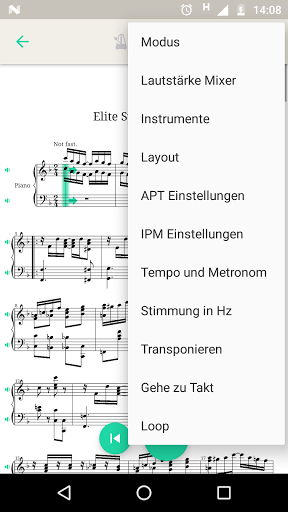 • Playback: hör dir das Notenblatt mit Klavier und Schlagzeug Klängen an