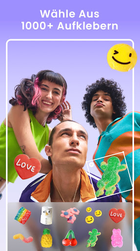 ● Wähle aus über 1000 Stickern & Hintergründen, um deine Collagen zu verschönern.