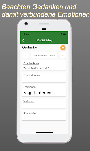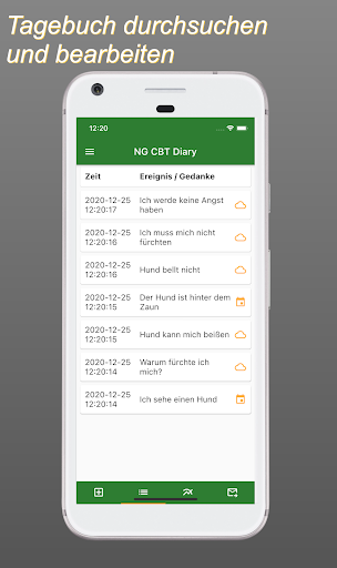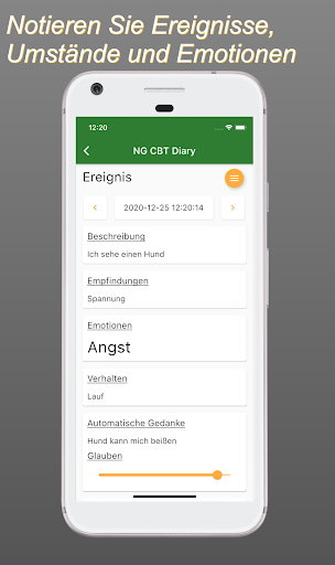 Wenn Sie in der kognitiven Verhaltenstherapie sind, ist diese Anwendung definitiv für Sie. CBT-Tagebuch hilft Ihnen Tag für Tag bei Ihrer CBT-Therapie. Mit dieser Anwendung können Sie Ereignisse, Ihre Gedanken, Emotionen und Verhaltensweisen aufzeichnen, in Diagrammen analysieren und Berichte an Ihren Therapeuten senden. Da sich das CBT-Tagebuch auf Ihrem Handy befindet, haben Sie Ihr Tagebuch immer dabei. Sie werden die Einnahme nie vergessen. Sie können überall und jederzeit Notizen machen.